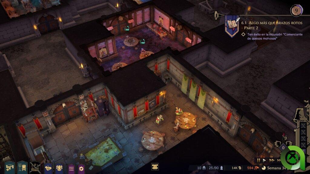 Naheulbeuk’s Dungeon Master nos ofrece una gran libertad para diseñar y decorar nuestra mazmorra, eligiendo entre diferentes tipos de habitaciones, objetos más o menos útiles y muebles. Cada habitación necesita un tipo de esbirro específico, cada cual con sus preferencias y características propias. Por ejemplo, los enanos son banqueros y artesanos. También, algunos prefieren ciertos mínimos de limpieza y decoración, mientras que otros no tanto. Por otro lado, tendremos que gestionar los recursos, como la inteligencia o las armas, la reputación, el dinero y las relaciones con las distintas facciones.