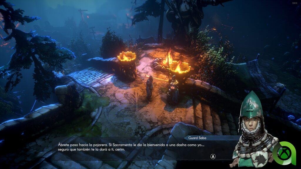 En No Rest for the Wicked todos los entornos están cargados de detalle, vemos muchos objetos en cada esquina, vemos como el viento mueve la vegetación, vemos la bruma que acompaña a la pestilencia. La iluminación también está muy cuidada, el pasar del tiempo afecta y podemos observar todas las localizaciones a diferentes horas del día. Los gráficos son muy artísticos, como si todo estuviera pintado, creo, con lápices de madera. Los personajes son carismáticos y variados, además de estar sumamente bien animados, sobre todo las expresiones faciales. Las voces de cada uno acompañan muy bien. Por cierto, el juego está en inglés subtitulado al español.