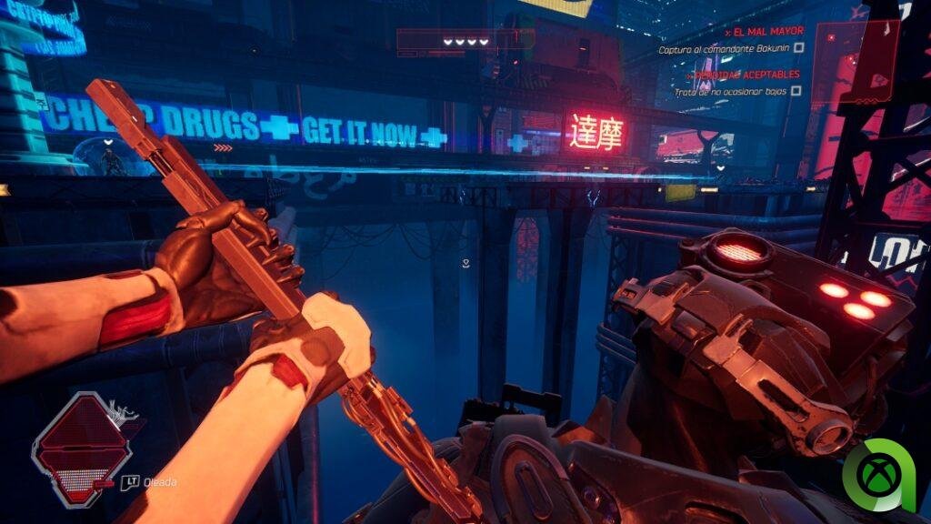 Los escenarios siguen también la misma tendencia ciberpunk, sin salirse demasiado de lo visto hasta el momento. Eso sí, con el desafío como eje central de su aventura. Si esta vez nos ponemos en la piel de Hel, el reto será igualmente mayúsculo en la mayoría de los casos. Se suman nuevos jefes que nos pondrán las cosas bastante difíciles, de los cuales Bakunin será el primero. Esa dificultad irá in crescendo, con un final que, sin entrar en spoilers, será una auténtica locura. Así que, si no has probado la aventura inicial, como indica el videojuego, te recomiendo que empieces mejor por ahí.