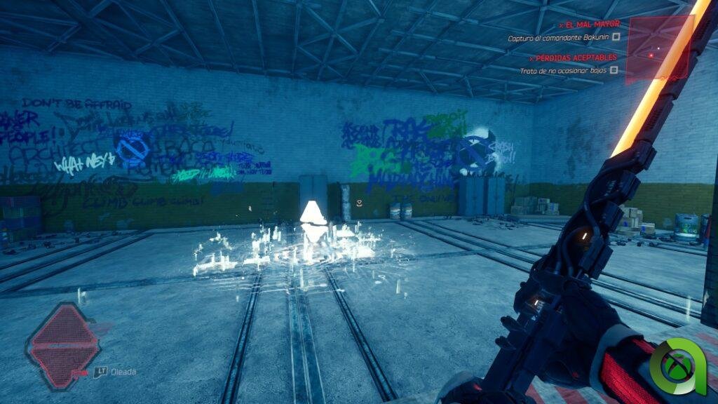 La primera imagen nada más comenzar es similar a la de Ghostrunner. En primera persona, nos metemos de lleno en los ojos de Hel, el jefe de Ghostrunner. Mara, la ama de llaves, reaparece en este DLC para encomendarnos una misión. A lo largo de su violento y frenético camino, Hel tendrá que seguir sus pasos, o bien enfrentarse a esta tirana y a sus secuaces. Lo que está claro, es que una vez más, tendremos que sobrevivir en un mundo que constantemente intentará matarnos.