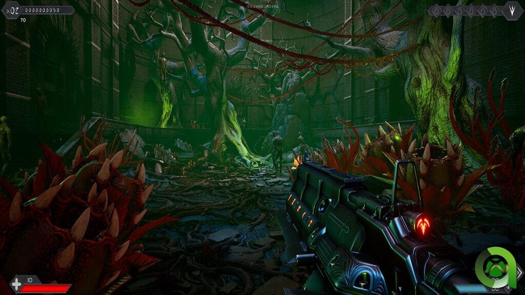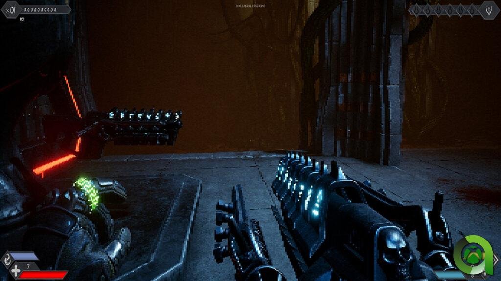Por último, hay que hablar del apartado artístico del juego. Y es que, gráficamente, Scathe cumple con creces. No es lo mejor que te vas a encontrar, y menos en PC, pero tiene una calidad más que destacable para un estudio independiente. En cuanto al sonido, este es quizá su punto más flojo. Los efectos elegidos para las armas y los enemigos no son demasiado realistas, pero cumplen su función de ambientar y diferenciar a qué te enfrentas. Sin embargo, no hay gran variedad de los mismos, por lo que se hacen bastante repetitivos, sobre todo cuando tienes poca salud. Pasando a un aspecto más positivo, el juego cuenta con filtros que podremos poner a nuestra partida, destacando ciertos objetos o simulando los clásicos de los años 90. Un gran añadido.