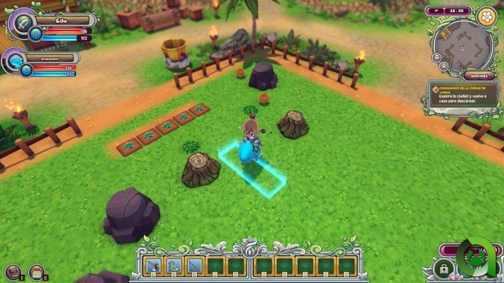 Esta zona del juego es puro Stardew Valley o Harvest Moon, un rincón donde pasar un rato relajado mientras haces las tareas típicas de una granja.