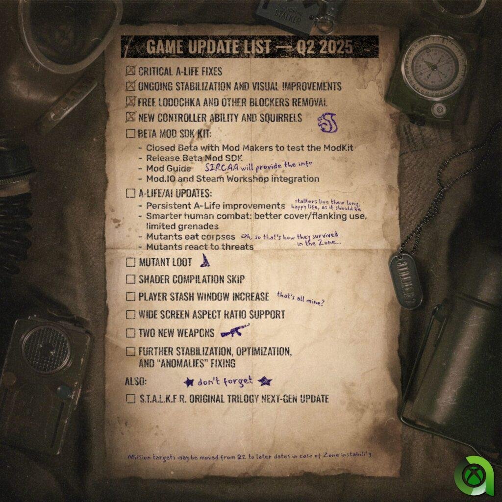 En cuanto a mejoras técnicas, se añadirá la posibilidad de omitir la compilación de sombreadores, se ampliará la interfaz del alijo del jugador, se incluirá soporte para relaciones de aspecto ultraanchas y se introducirán más correcciones relacionadas con las Anomalías, además de optimizaciones generales de rendimiento.