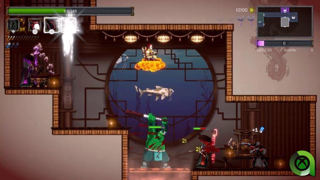 Con estas opciones disponibles, la movilidad del personaje es muy fluida a la par que rápida. Ciertamente todo lo referente al movimiento y al ritmo del juego podría resumirse en «rápido». Continuamente nos estamos moviendo, golpeando y saltando, haciendo que cada partida sea intensa y, dependiendo de nuestra habilidad, más o menos larga.