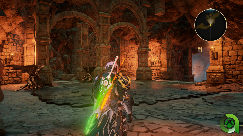 El mundo de Tales of Arise se divide en zonas cerradas relativamente grandes, con accesos «secretos» que encontraremos explorando y que siempre tendrán recompensa, ya sean cofres de loot con equipamiento épico, o materiales raros para la fabricación de objetos. Tendremos las clásicas mazmorras de varios niveles, repletas de enemigos que nos darán mucha experiencia y equipamiento útil para nuestra aventura, ¡y molan mucho visualmente! En algunas tienes que lanzarte al vacío con pequeños lagos y todo, una auténtica pasada.
