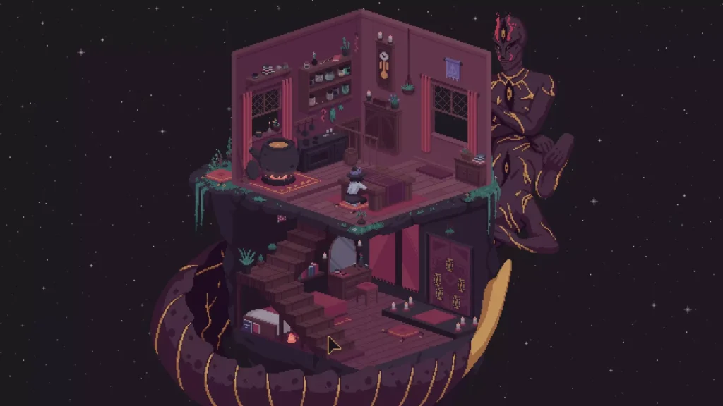 Artísticamente el juego es muy atractivo, tanto en lo visual como en lo sonoro. The Cosmic Wheel Sisterhood goza de un pixelart muy bonito, colorido, carismático y bien animado. También, como decía, los diseños de las brujas son preciosos, cada diseño resalta la personalidad de dicha bruja.