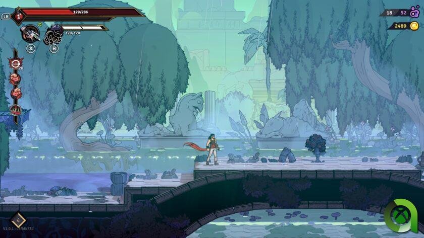 Otro de los alicientes para querer realizar la run un poco mejor, es el hecho de que en El Oasis podremos gastar los puntos de eco que hayamos recolectado en la partida. Estos permitirán tanto desbloquear armas, herramientas o accesorios de gran utilidad. En este lugar podremos desbloquear habilidades pasivas en los diversos árboles de habilidad. Estos desbloqueos sí que los tendremos para siempre, pudiendo tener una poción de vida extra, una tasa de regeneración del aliento de Vayu más alta, etc.