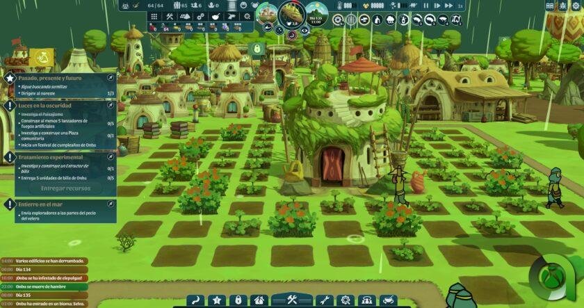 Durante la partida debemos encargarnos de levantar una aldea funcional. Recolectamos recursos como madera, piedra o hierro, construimos viviendas, granjas y centros de investigación, y asignamos tareas a los habitantes para que la comunidad prospere. Si queremos que nuestros aldeanos sobrevivan, deberemos producir comida, mantenerlos sanos y asegurarnos de que dispongan de agua, medicina y refugio. Para ello también necesitaremos desbloquear nuevas tecnologías, muchas de ellas útiles y otras potencialmente peligrosas, como las que afectan directamente a Onbu.