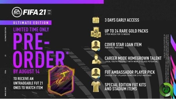 Como siempre, las bonificaciones de FIFA 21 dependen de la edición que reservemos. Reservando la edición estándar, obtendremos los siguientes beneficios: