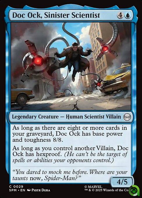 Con todo esto, me ha sorprendido mucho el giro que ha recibido el color azul en esta colección. Siendo mucho más agresivo de lo esperado. Con cartas como el Doctor Ock que nos permitirá tener mucha presión en mesa, el color azul cuenta con muy pocos contrahechizos para lo que es habitual. En este sentido, el mazo que hemos podido jugar quería funcionar más bien como un mazo Dimir. Es decir, usando todo lo posible el cementerio. Para ello encontramos muchas cartas con la habilidad de Connive, que nos permite robar y descartar una carta a nuestra elección. Una forma rápida de llenar el cementerio, además de ganar presión al sumar contadores a nuestras criaturas. Con todo esto, esta nueva colección de Magic, muestra un respeto absoluto por la obra de Marvel, haciendo que los fans e Spiderman se sientan como en casa. Desde aquí agradecemos al equipo de Wizards of the Coast la oportunidad de poder probar de cerca esta colección.